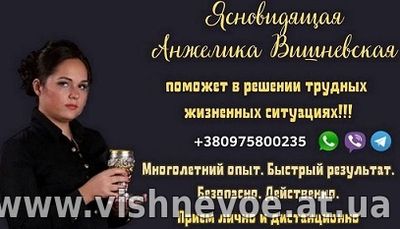 Спадкова провісниця, ясновидиця в 10 поколінні, з давнього роду Дошкещі Анжеліка Вишневська допоможе у вирішенні важких життєвих ситуаціях!!!