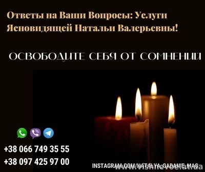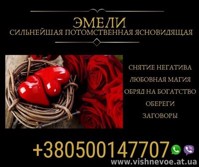 Спадкова провісниця, ясновидиця в 10 поколінні, з давнього роду Дошкещі Анжеліка Вишневська допоможе у вирішенні важких життєвих ситуаціях!!!
